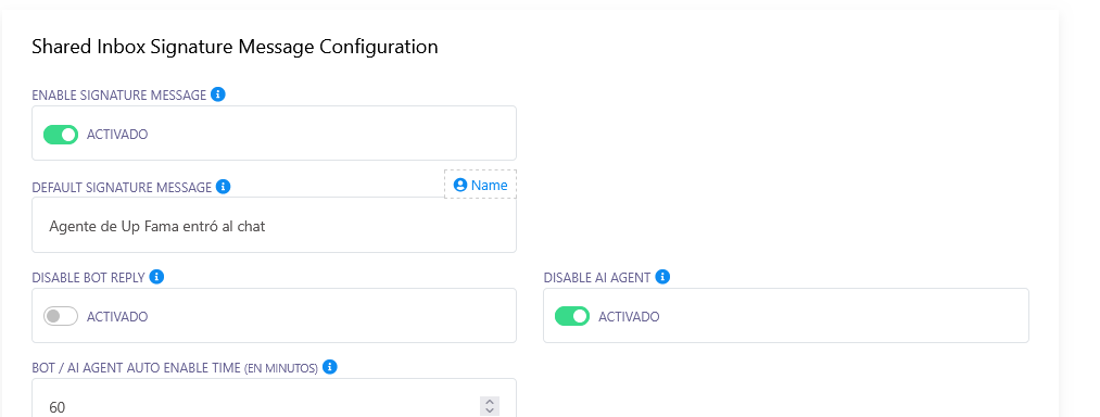 We retested this on our end, enabled the signature message, and upon joining the chat, we found that in our account, only the AI is paused. which means that this is working as expected. To properly investigate this issue on your account, please submit a support ticket and share your login information so we can review it.
