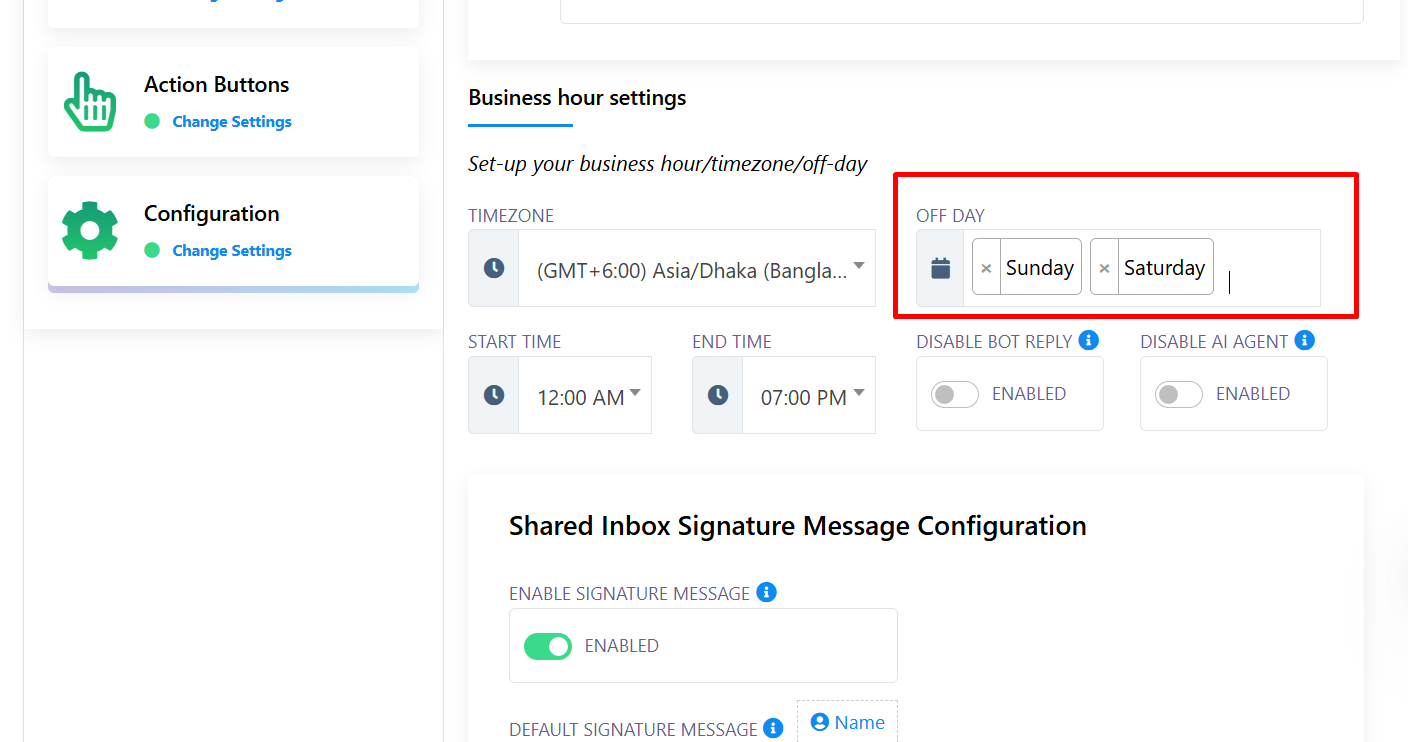 There is also a limitation in the Business Configuration section. The panel only allows a single start time and end time. Many businesses operate with different hours on different days. There should be an option to set multiple time ranges or day wise hours. This will make the configuration more accurate and practical.