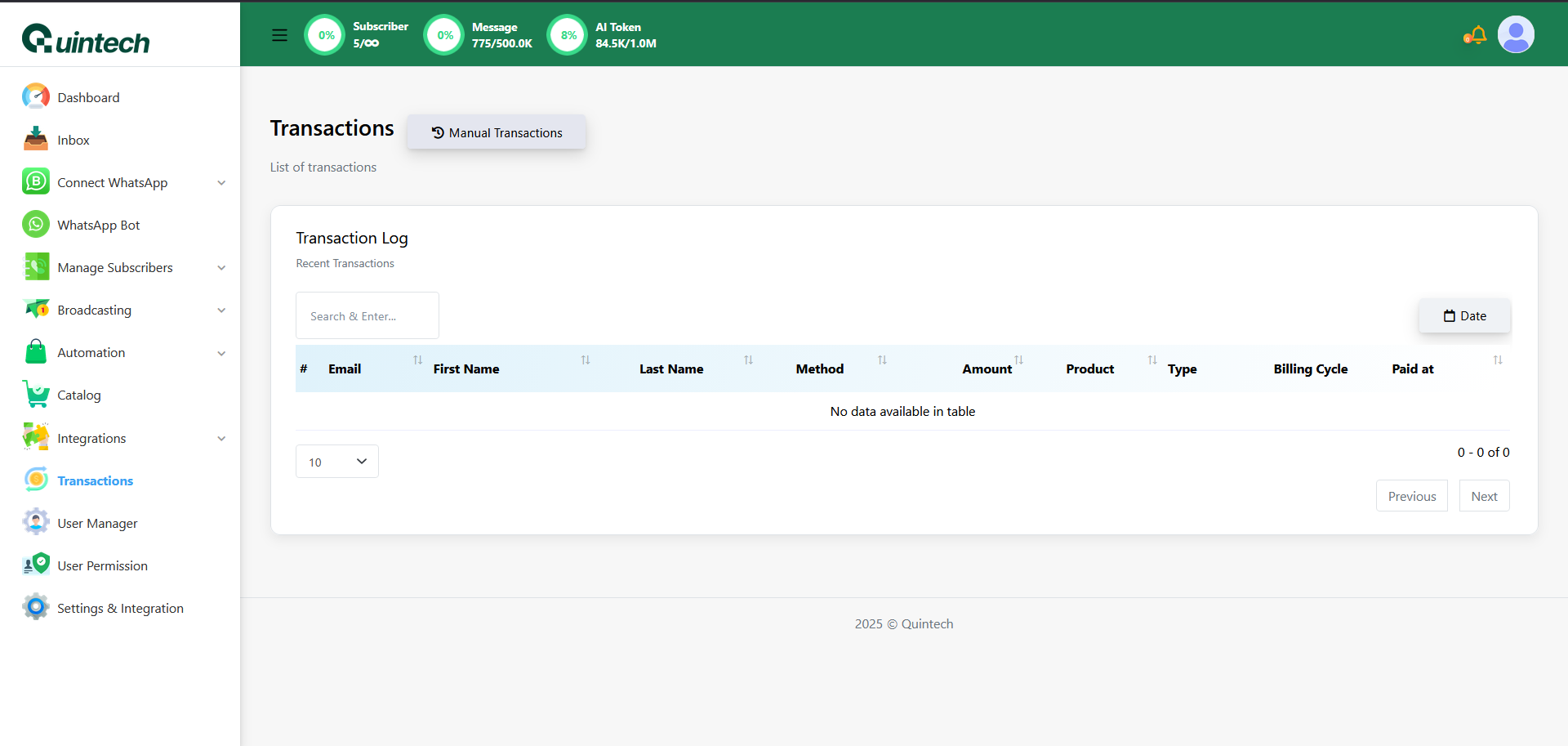 I want to request for the user transaction page to show records of catalogue transactions ( cash on delivery, manual payments, payments via API/payment gateways ) This record should also record of service fee and shipping fee if added and should also have the export button and filter by payment method or date. This page currently shows no record on the user dashboard because it is configured for the admin.